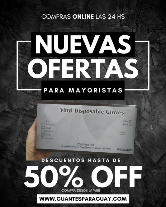 Precio habitual Gs. 50.000 PYGPrecio habitualPrecio unitario / porGs. 70.000 PYGPrecio de oferta Gs. 50.000 PYGGuantes de Nitrilo Negro x 100 unidades